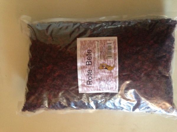 bitte beachten: der Kot des Hundes verfärbt sich rot